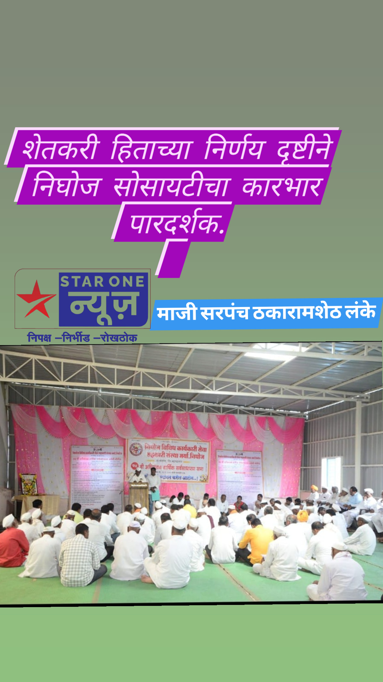 निघोज सोसायटीची ७४ वी वार्षिक सर्वसाधारण सभा संस्थेचे चेअरमन सुनिल वराळ यांच्या अध्यक्षतेखाली शांततेत व खेळीमेळीच्या वातावरणात संपन्न झाली यावेळी मार्गदर्शन करताना लंके बोलत होते. यावेळी सचिव रामदास भोसले यांनी अहवालवाचन केले सर्व विषय सभासदांनी टाळ्यांच्या गजरात मंजूर केले. संस्थेचे उपाध्यक्ष संतोष लामखडे, संचालक दत्तात्रय लंके यांनी विषय वाचन करताना प्रत्येक विषयाची माहिती दिली. माजी सरपंच लंके यांनी सांगितले की गेली दोन पंचवार्षिक मध्ये खासदार नीलेश लंके यांच्या मार्गदर्शनाखाली काम करताना सोसायटी पदाधिकारी व संचालक मंडळाने राज्य सरकारच्या योजना सर्वसामान्य शेतकऱ्यांना कशा मिळतील यासाठी प्रयत्न केले चेअरमन सुनिल वराळ,व्हा.चेअरमन संतोष लामखडे व सर्व संचालक मंडळ यांनी अधिकारी व कर्मचारी यांच्याशी समन्वयक ठेऊन पारदर्शक कारभार केला म्हणून शेतकऱ्यांबरोबर सोसायटीचा फायदा झाला आहे.