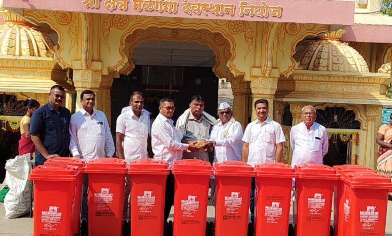 क्षेत्र कुंड येथे स्वच्छतेसाठी पुढाकार; मळगंगा मंदिर परिसरात कचराकुंड्यांची भेट