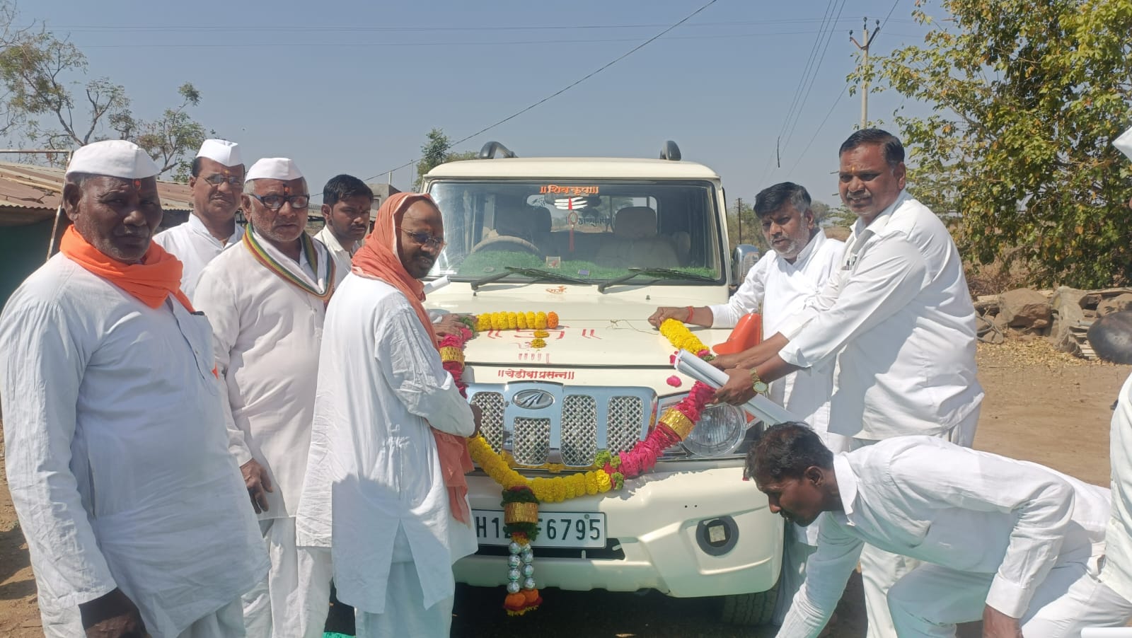 दक्षिणमुखी हनुमान मंदिर देवस्थान यांनी प्रथमच देवस्थान साठी बोलेरो गाडी घेतली आहे महंत दत्तगिरी महाराज बाळू काका कांबळे व अर्जुन महाराज यांचे हस्ते पूजा करण्यात आली